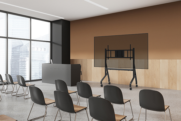 Entdecken Sie den neuen MOVE Go XL, ein mobiler Rollwagen für schwere Bildschirme bis zu 110" und einer maximalen Tragfähigkeit von 125 kg. Der mit einer stabilen Struktur ausgestattete Rollwagen bietet auch die perfekte Lösung für große und ultrabreite 105" (Touch-)Bildschirme.