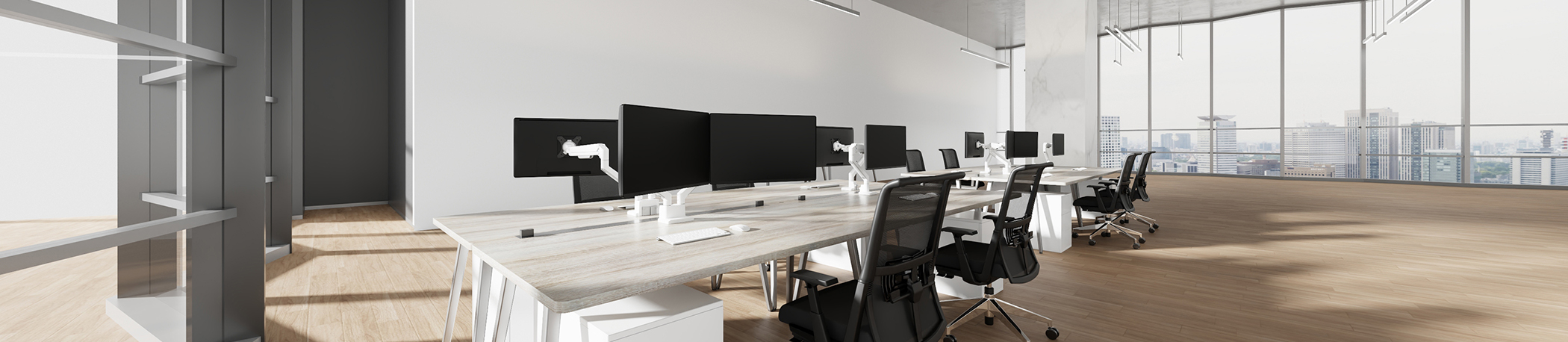 Lernen Sie die neuen NEXT Slim Gasfeder-Monitorarme kennen, die schlankes Design mit praktischem Komfort verbinden. Diese neuen ergonomischen Modelle sind für Bildschirme bis zu 35“ (einfach)/32“ (doppelt) geeignet und lassen sich dank der Gasfeder und der Full-Motion-Technologie problemlos auf jede Höhe und jeden Blickwinkel einstellen. Darüber hinaus verfügen die NEXT Slim-Tischhalterungen über einen raffinierten 180°-Stoppmechanismus, der verhindert, dass die Halterung mit einer Wand oder Trennwand in Berührung kommt, wenn sie in deren Nähe installiert wird.